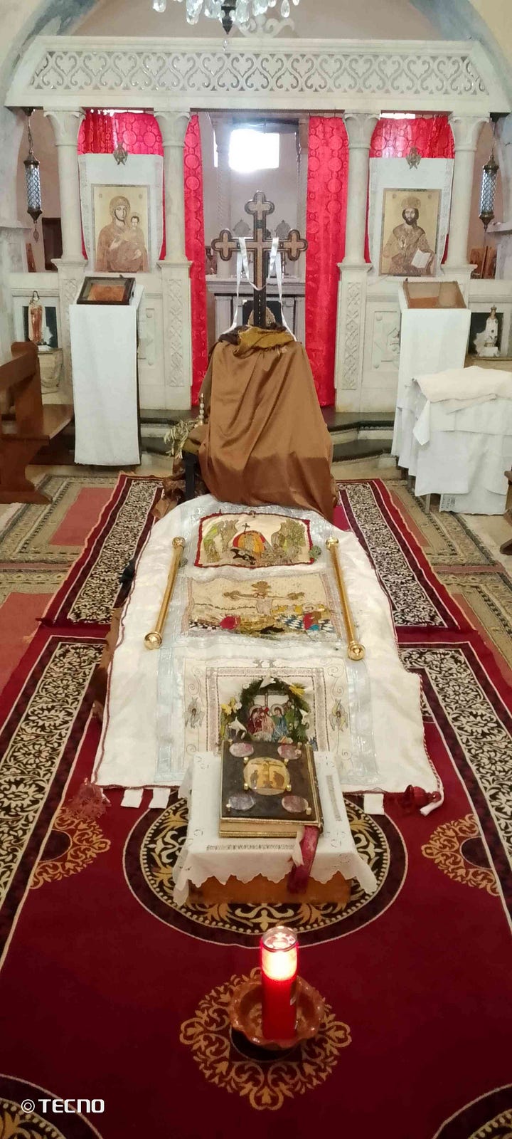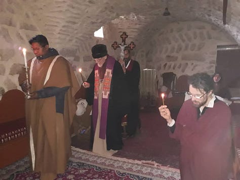 Woensdag moest de pastoor van Qara vervangen worden, zodat we de lange dienst van de wijding van de olie tweemaal gevierd hebben. Bovendien hebben we in Qara daarna nog enkele zieken bezocht, voor hen gebeden en hen de ziekenzalving gegeven. Sommigen konden vroeger van een vrij weelderig bestaan genieten en leven nu echt arm, in een heel eenvoudige woonst.