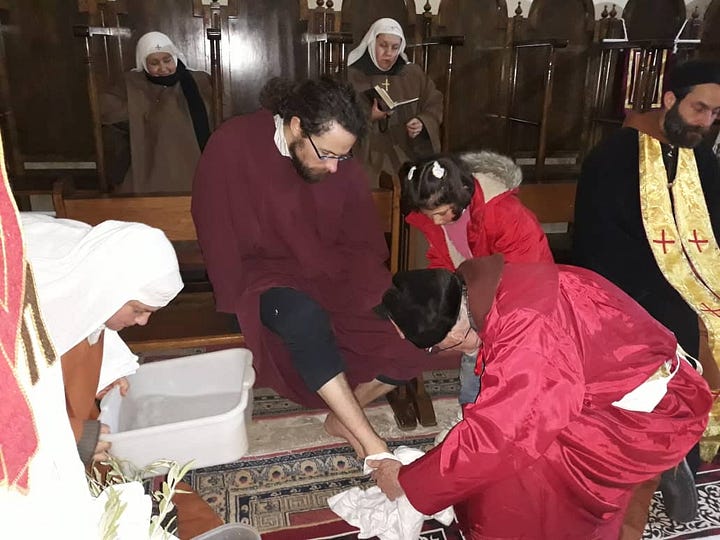 De Goede Week hebben we zo goed mogelijk gevierd volgens de rijke en uitgebreide oosterse liturgie, weliswaar samen met twee vieringen uit de westerse liturgie: de Eucharistie van donderdagavond met de voetwassing, en de Eucharistie van Paaszondag.