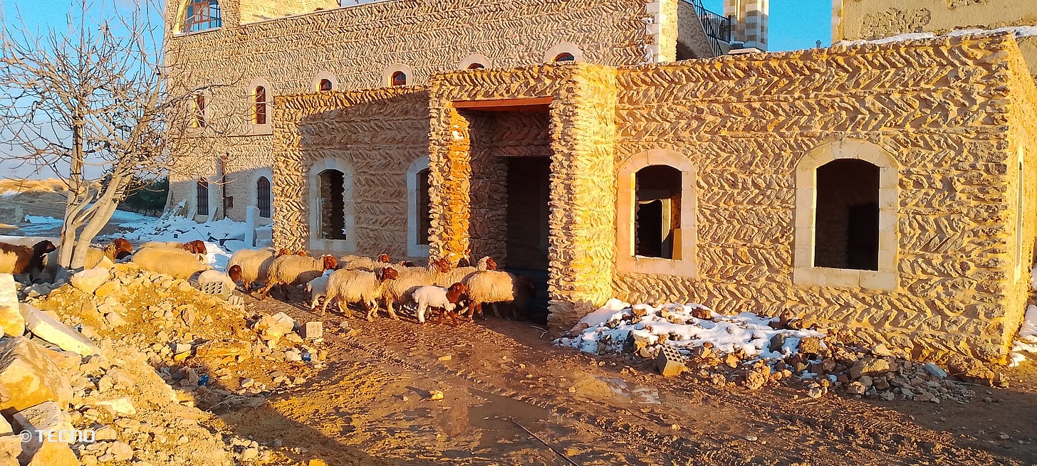 Sinds enkele dagen is er een pak sneeuw gevallen en is het bitterkoud. De meest kwetsbare schapen hebben voorlopig een warm onderkomen gevonden in de in aanbouw zijnde kapel van ons Sint Jozefs-klooster. Moge het geblaat van deze viervoeters al een natuurlijke voorbereiding zijn op de lofzang die later zal opstijgen in de voltooide kapel.
